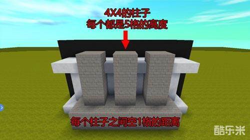 第五步:在建筑的左边用灰色硬沙块搭建长条柱子