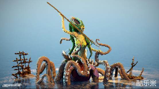 对比一下旁边的船只便可发现这娜迦海妖体型之大,光是一条触角就可将整艘船环绕起来。海妖上身为人形,一头藻绿色的长发垂腰,手持长矛配上下身的无数修长章鱼触角,让她在海上可以兴风作浪。