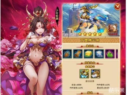 “万里腾云驹”不仅技能影响战局,培养其好感度还可开启天赋增强,全属性的百分比加成可极大提升少年的战力。此外,还能与“幽冥青金火”同时开启图鉴组合“幽冥腾云”,提升达20%暴击率,增加玩家击败高战力敌军的机会。