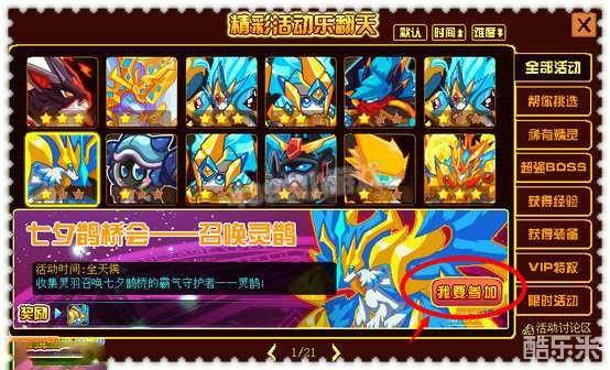 1、首先赛尔们可以在活动面板中找到灵鹊活动,点击我要参加去看看吧~