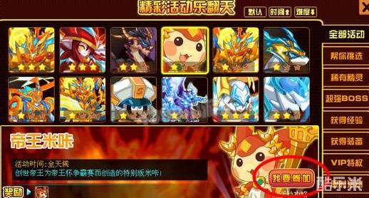 1、首先赛尔们可以在活动面板中找到帝王米咔活动,点击我要参加去看看吧~