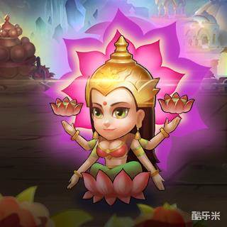 在《诸神大乱斗》中,吉祥天女肤色洁白,头上有高耸的发髻,坐于莲座上。她有着四只手臂,其中两只手上举着天灾莲花,身后有着巨大的红色莲花光环。她有着莲花爆裂、莲花牢狱和战争鼓舞三个普通攻击技能,以及一个沉睡魔咒的特殊技能,使用时能够使场上所有敌人陷入沉睡。