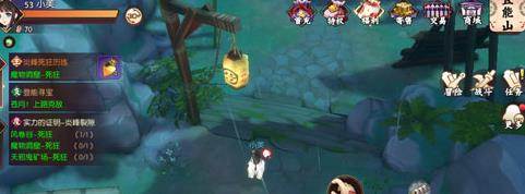我们到了这里之后,发现这里同样是一个小路,两边都是树木,而比较明显的是这里有一个黄色的灯笼,上面用红笔写着三个字【侍神灯】,我们来到这个黄色灯笼的下面,就会出现挖宝的按钮,我们点击一下,就能完成任务了。苍月上路克敌这个任务就是需要在一个黄色灯笼下挖宝,和真红的任务是类似的。