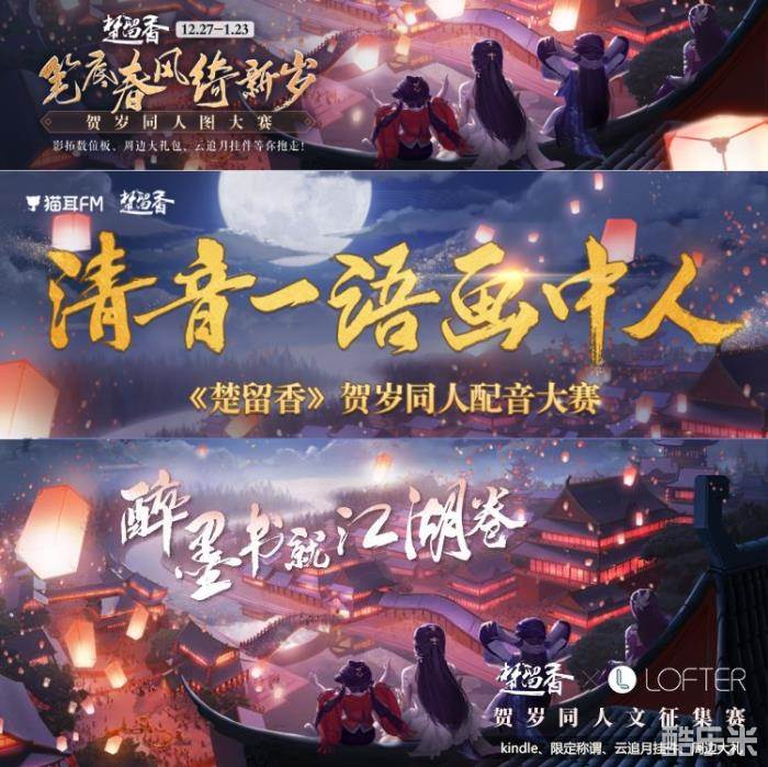 《楚留香》周年庆活动即将到来,贺岁同人赛事也陆续开启。本次贺岁同人赛,《楚留香》联合了猫耳、半次元、LOFTER、B站四平台开启,贺岁同人活动系列横跨了绘画、文字、配音与视频四大领域,欢迎玩家们踊跃创作!