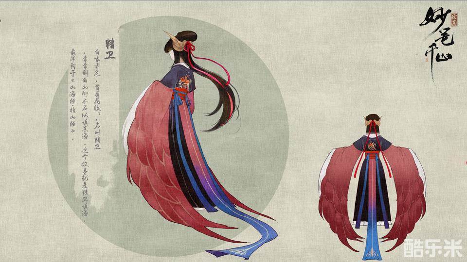 在《绘真·妙笔千山》游戏中,玩家初入《沧海》画卷,就可看到这里惊涛骇浪,危峰伫立在海面,狂风不止,人鱼鲛姝在礁石上暗自悲泣,落泪成珠。而要追究到这一切的由来,就要从神农氏炎帝之女——精卫说起。精卫原本负命载着神农氏宝珠前往东海寻访火山,不料正逢海上火山喷发,惹起北方神祇玄武神威天降,兴起无边风浪,玄武被一块火山碎石击中,沉睡于海底。可怜的精卫也不幸沉陷于海底,命丧在惊涛骇浪之中。由于生前的怨念与宝珠产生共鸣,精卫化成鸟,附着于海底玄武的身上,形成火山,火山不停喷薄而出鸟羽形态的精卫,在空中盘旋,待聚集到一定规模后,渐次冲入海中。入水之后,化作岩石,再次覆盖于玄武身上,如此往复,无休无止,直到将东海填平为止。