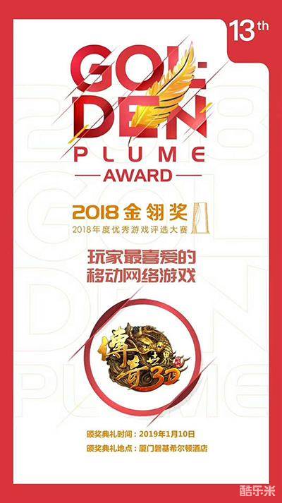 2018年“金翎奖年度优秀游戏评选大赛”盛大颁奖典礼已于昨日在厦门磐基希尔顿酒店成功举办,《传奇世界3D》以其优异的3D制作品质、超高人气的市场表现在500余款游戏中脱颖而出,成功斩获2018金翎奖“玩家最喜爱的移动网络游戏”大奖!