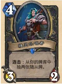 善于把握节奏的盗贼非常需要优质的过牌手段,精灵咏唱者不仅可以占场还可以稳定过两张随从以备下回合站场,不管是节奏贼还是蓝龙贼都需要带这张卡,这也是盗贼职业卡中目前使用率最高、吃炮灰最多的随从了。