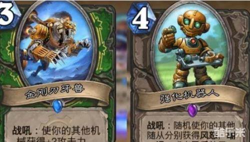 金刚刃牙兽和强化机器人可以给你铺场的机械随从BUFF,金刚刃牙兽是给所有机械随从+2攻,强化机器人是使每个随从获得风怒、嘲讽、圣盾中的一种。