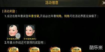 年兽犄角是成功击败年兽之后的奖励,可以在活动界面兑换“贺年福弟”或“贺年福妹”这两个限时帽子。