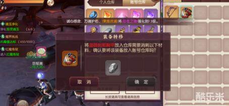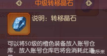 中级转移晶石可以将50级的橙色装备放入账号仓库;