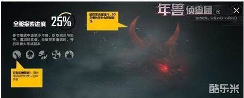 ②全服玩家进入春节模式,探索散布在地图上的年兽。