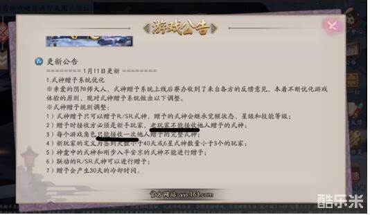 阴阳师对于近期争议较大的式神赠予系统,官方在体验服积极的进行了改动和优化,而对于该系统优化后,新规则限制下,让该系统彻底变成了鸡肋,不但只能给一只完整式神,而且老玩家还被排外了,一起来看看具体的优化和改动内容吧。