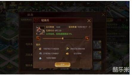 第二个影响因素是武将搭配的兵种。每一类兵种有它的行军速度。如果配置上行军速度最快的轻骑兵,那么所用的时间将是最少的。当然,也可以搭配上像巡逻骑兵、弓骑兵等移动速度较快,攻击力更高的兵种。
