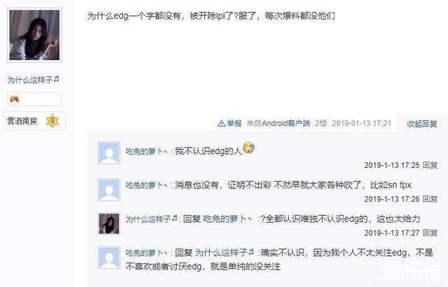 之后有人询问关于EDG的消息,该知情人表示自己不认识EDG的人,也没有任何人提到EDG的消息,估计是训练赛不够出彩吧,因为训练赛打得好的话,大家会到处乱吹,比如SN和FPX,而且自己也不太关注EDG,不喜欢也不讨厌,所以没有EDG有关的消息。