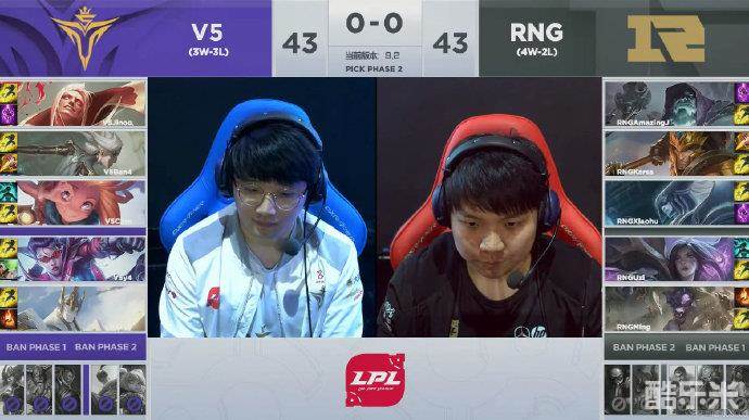 V5是一套打中野节奏其他路发育团战的阵容,而RNG是团战与分带兼具的阵容,比赛开始双方打野常规开局。