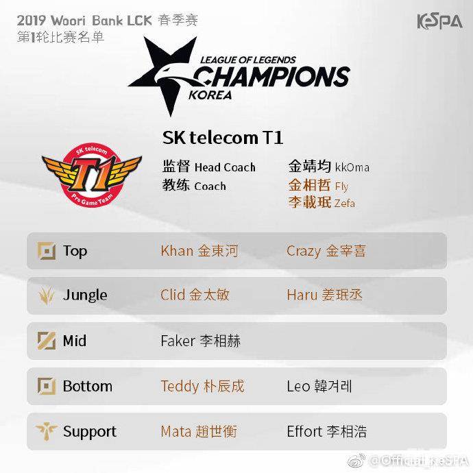 英雄联盟2019LCK春季赛选手名单:SKT银河战舰