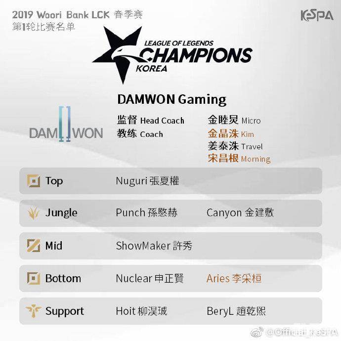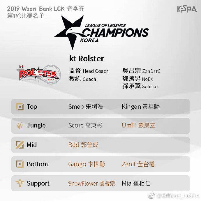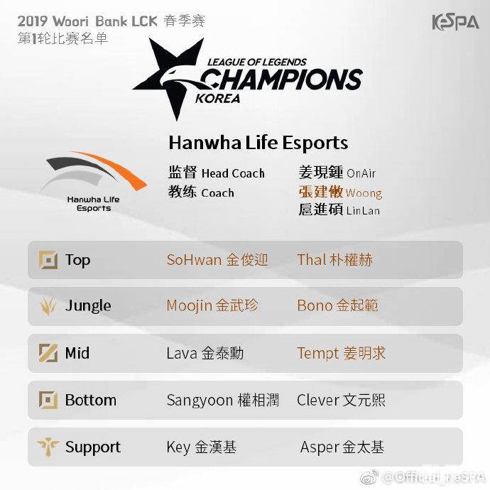 2019LCK联赛第一轮比赛大名单公布,十支队伍将以新的人员面貌出征,对春季赛冠军展开争夺!