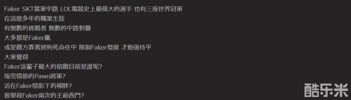 你认为Faker的一生之敌是谁呢?