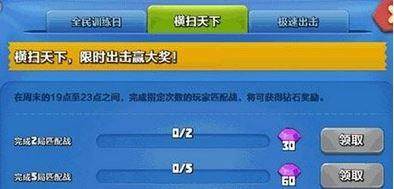 活动描述:这个活动只能在周末的19点到23点之间,完成指定次数的玩家匹配战,将可获得钻石奖励。
