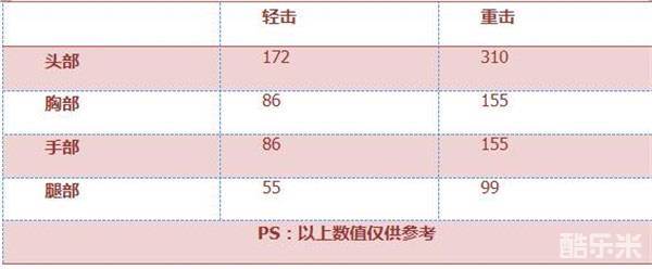 根据上述信息,我们可以看出:轻击状态下,除命中头部可瞬秒目标外其他皆需二次补刀;而重击状态下,除命中目标腿部需补刀外其他皆可一击毙命,是一把不可多得的优秀刀具。