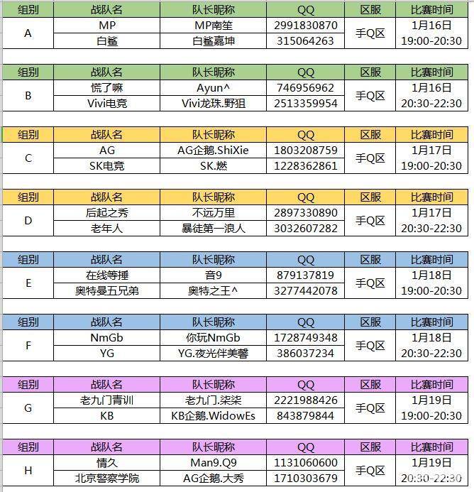 8强比赛:1月20日——21日19:00——21:00,采用BO3模式,每天2组,共分为4组。