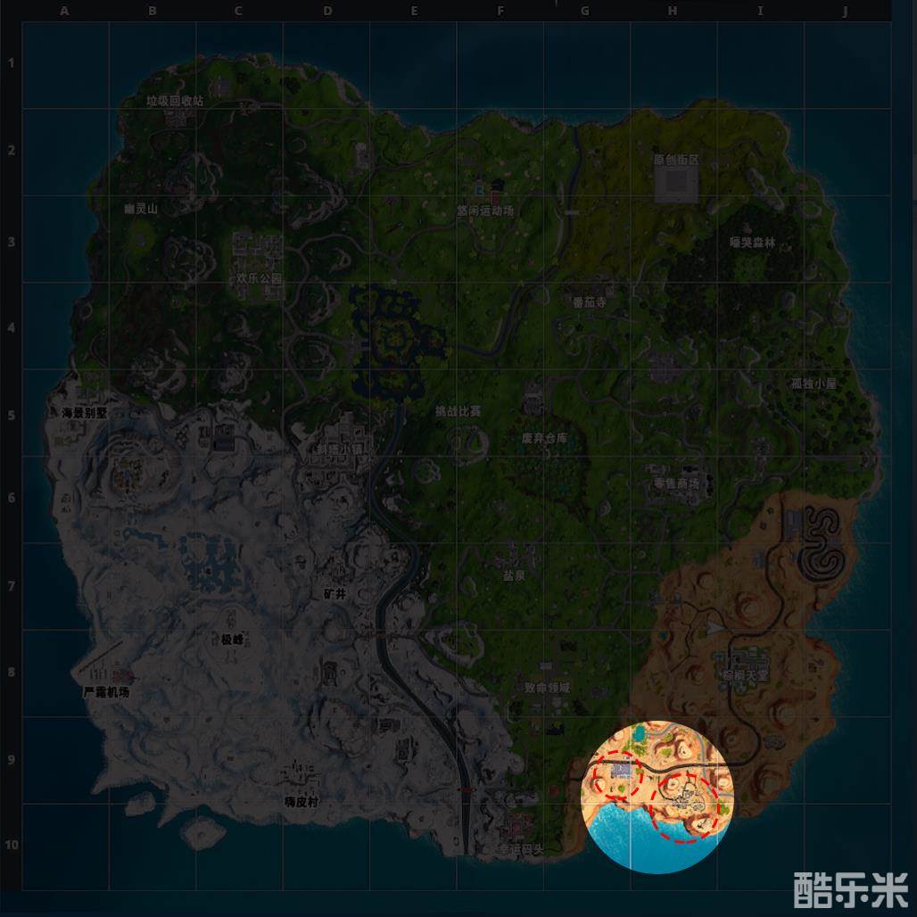 首先这三个点都在地图的靠下半区,从上到下三个图依次为:沙漠小镇、研究所和营地以及迪厅。
