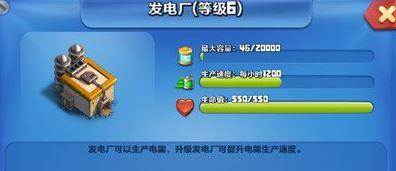 此时它的最大容量是20000,生命值是550,生产速度是每小时1200电能。