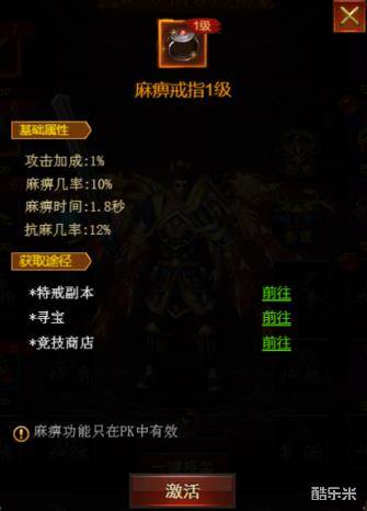《雄霸天下》特戒系统介绍-麻痹戒指