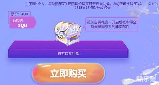 拼团满4个人,每位团员可1元团购价购买孤芳自赏礼盒。单Q限最多购买3次,1次1个。1月8日15点后开放购买!