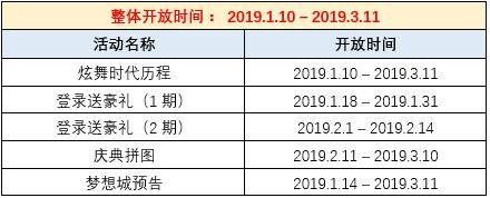2019我们迎来了炫舞时代的第五年,感谢大家这些年的陪伴,在2019年1月版本中,我们为大家带来了超多活动和福利。其中,五周年庆典系列活动也在1月版本揭开帷幕,庆典第一弹为大家带来炫舞时代历程、登录送豪礼、庆典拼图、梦想城预告等多个活动多重福利,快来和豆丁一起看看吧!