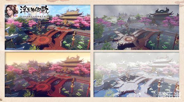 在此次曝光的场景视频中,《浮生为卿歌》手游还以延时摄影的方式展现了昼夜交替、天气变幻等令人如痴如醉的光影效果。从游戏初期整体世界观的搭建,到设计、线稿、配色,再到天气特效的加持,每一个过程都匠心独具,这也使《浮生为卿歌》手游最终为玩家呈现出了一个唯美而又绚丽的古风世界。