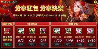 | 登录奖励 | 每日登录获得1个 | 新年红包 | 使用后,可以给同频道内的冒险家送出新年祝福和礼物。 |