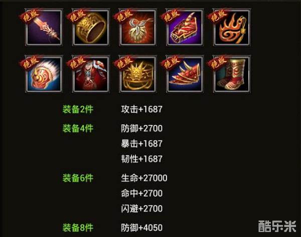 绝版神装总共有10个部位,分别集齐2、4、6、8、10个部位,即可激活套装属性,越高等级的套装,所增加的属性越多,
