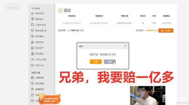 骚男听到后乐了,骚男表示没事,在直播页面里面有关于结错账的赔偿,需要赔偿观众们的豆子。骚男以为UZI赔偿也是几万豆子,没想到UZI打开赔偿界面后,又给骚男发了一条微信:兄弟,他要我赔一个亿,怎么办!这一个亿我去哪弄这么多豆子啊,这鼠标一点,一个亿都没有了!观众们这个时候也纷纷起哄起来,主播赔我血汗豆,主播赔我血汗豆啊!把UZI也着急的不行!