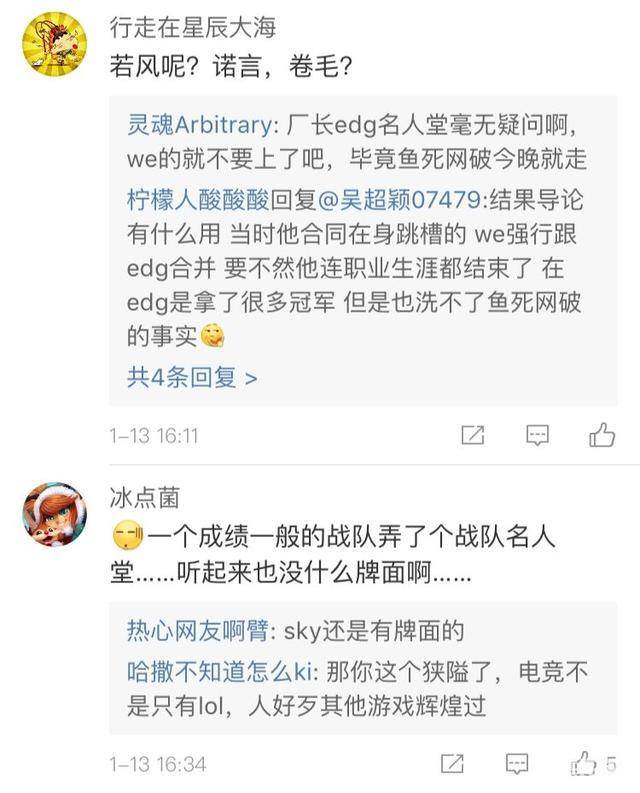 于是许多网友就讨论起了当年老WE解散的恩怨风波,当面老WE队内产生矛盾,教练阿布带着厂长与卷毛出走,加入了EDG,他们三个没入选WE名人堂无可厚非!那为何连若风没入选呢?论起贡献、功劳也与微笑、草莓一般无二,而且据说当年老WE的许多队员都是若风招来WE的,若风还是当年的老WE的队长!为何没入选WE名人堂!许多网友猜测是因为当年老WE解散风波的时候,阿布带走了厂长、卷毛后,令WE元气大伤,而那时若风不仅没有留下来稳住军心,还选择了退役做直播卖饼!可能与俱乐部当时也闹得不愉快!有种落井下石的感觉!也就是说实锤了?所以没入选WE的名人堂!而其中的具体原因不得而知!