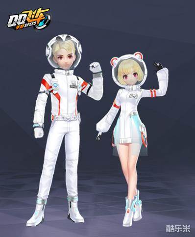 精心打理的金色短发搭配科技感十足的防护头盔,活力满满,纯白色的套装以两条红色侧边点缀,为简单的套装增添几分色彩。女生的防护头盔做成小熊耳朵样式,搭配裙装的防护服,在太空中也显得可爱十足呀!