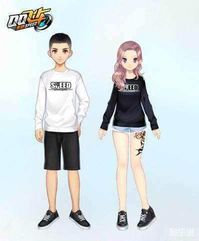 黑色小平头上有着不规则的刻痕,彰显男生的不羁,极简白色T恤印制“SPEED”字样,搭配黑色五分裤和板鞋,运动少年标配。女生波浪形的长发归至一侧,温婉可人,黑色T恤下为牛仔短裤,露出修长美腿上的纹身,个性十足。
