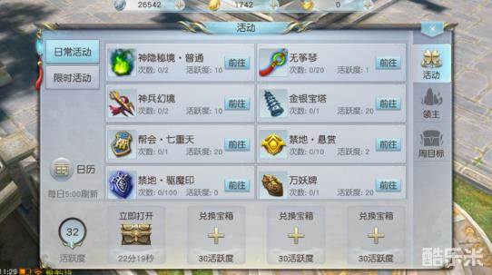 奖励:经验、威望、精力值(有几率获得藏宝图与技能残卷奖励)