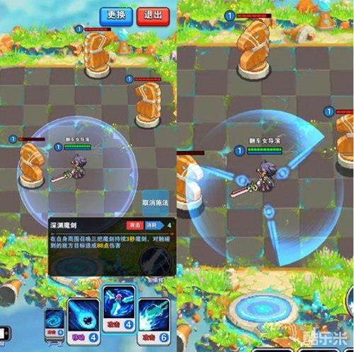 攻击技能1:深渊魔剑-在自身周围召唤三把魔剑持续3秒,耗蓝4。