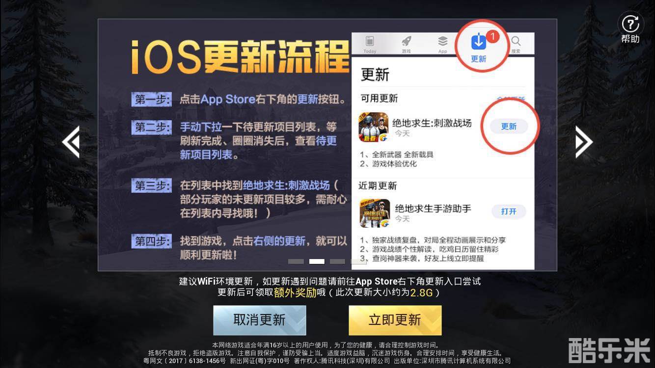 本次更新为非强制更新。如果网络不合适,鸡友们可以选择暂不更新,仍然可以玩旧版本游戏。