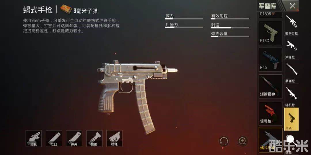 新版本新增蝎式手枪。蝎式手枪使用9mm子弹,可切换单发和全自动两种模式,可装配瞄具、枪口、弹夹、握把、枪托等配件。蝎式手枪将在所有地图中刷新。