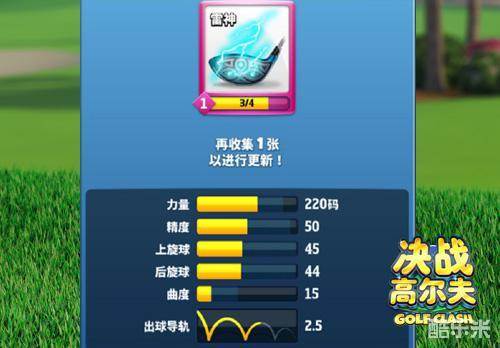 雷神:和流星比较起来,雷神的力量属性稍逊一筹。不过,雷神的下旋属性不俗,在一些要避免高尔夫球落地后滚动距离太远的地图里,会发挥奇效。不过雷神的获得难度也不小,如果玩家同时拥有流星和雷神的话,哪一根球杆的等级高就用哪一个吧。