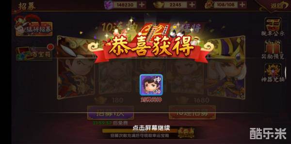 招募系统可以定时可以免费招募一次,玩家也可以通过元宝购买,或者使用招募令进行招募。