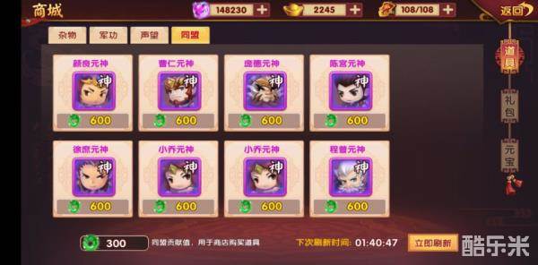 商店会产出各种武将的碎片,或者是混沌元神,随机性较高。