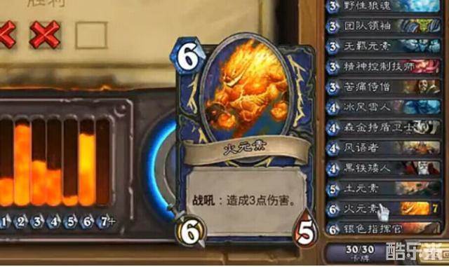火元素:如果小伙伴们真的不想带大螺丝的话火元素也是一个不错的替代品,身材正好战吼也很好,有遏制快攻卡组的效果。