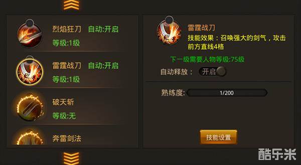 【奔雷剑法】攻击前方4格的目标,附加大量伤害并增加生命回复速度