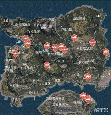 一个地图可以说并不是很大,但是这些红点都是固定刷新车的位置,及时记住了但是到时也难免糊涂,你只要记住挨着最大的城市或者地点就好。