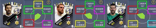 这里举个例子,比如你的中后卫缺少“防空卫士”或者“绕前卡位”,那门将就需要“无畏出击”来进行完善,对“无畏出击”有加成的球路判断,而一级属性是球路判断的有诺伊尔、奥布拉克、阿利森、乔哈特、卡里乌斯。都可以作为备选。