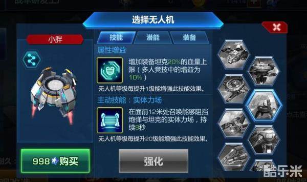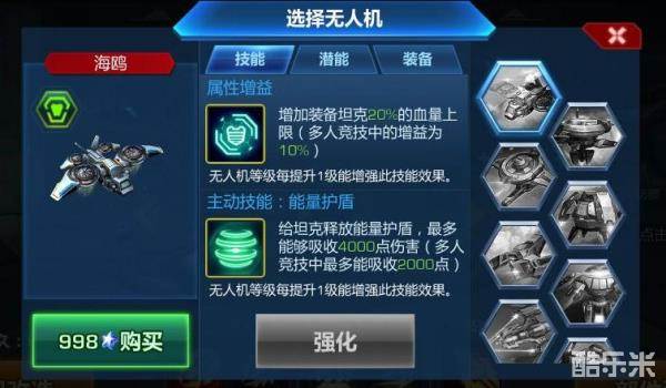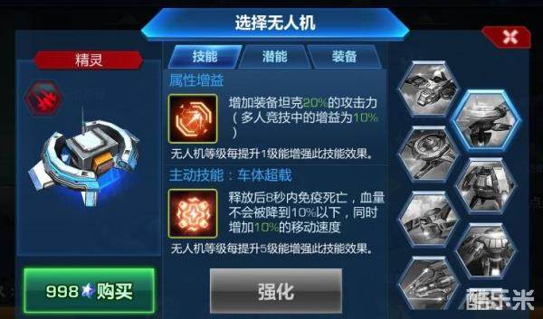 激活后5秒内免疫死亡(血量最低到10%),同时提高10%的移动和装填速度,效果随无人机等级变化,每45秒可使用一次;