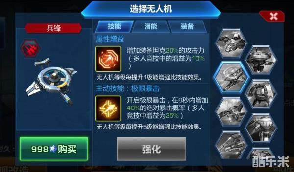 激活后8秒内,获得大幅额外暴击几率,数值随无人机等级变化,每45秒可使用一次;